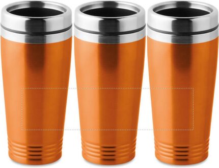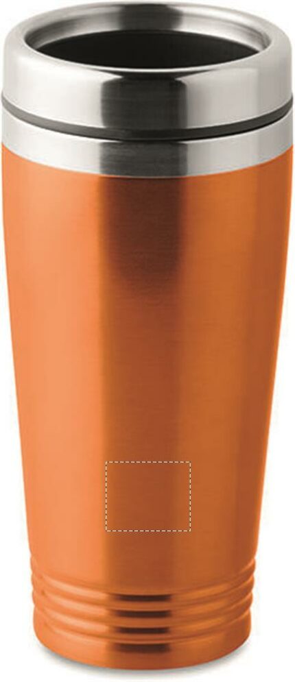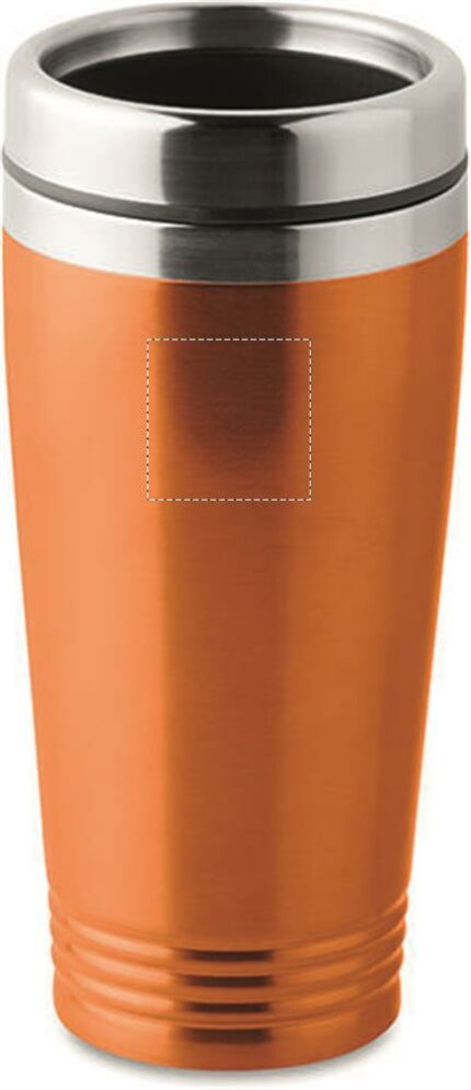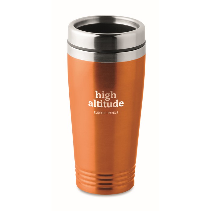Double wall stainless steel travel cup with black PP lid. Capacity: 400 ml.