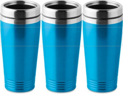 Double wall stainless steel travel cup with black PP lid. Capacity: 400 ml.