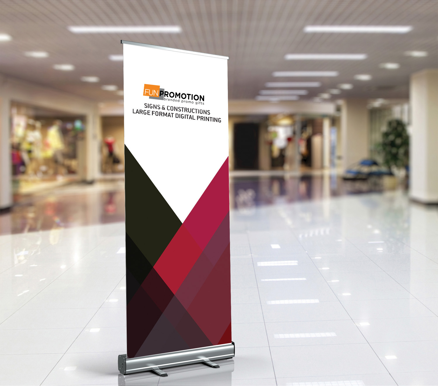 Roll up stand μονής όψης, σε 2 διαφορετικά μεγέθη, κατασκευασμένο από αλουμίνιο. Στηρίζεται στο δάπεδο με 2 πέλματα. Η εφαρμογή της εκτύπωσης γίνεται με την χρήση ταινίας διπλής όψης στη βάση και με clip στο άνω μέρος. Διαθέτει υφασμάτινη τσάντα μεταφοράς. Προτεινόμενο υλικό εκτύπωσης: πολυπροπυλένιο (PVC).  Στη FUN PROMOTION σας δίνουμε τη δυνατότητα να τυπώσετε το λογότυπο και τα στοιχεία την εκδήλωσή σας. Roll up stand μονής όψης χρήσιμο για εκθέσεις, συνέδρια και λοιπές εκδηλώσεις.