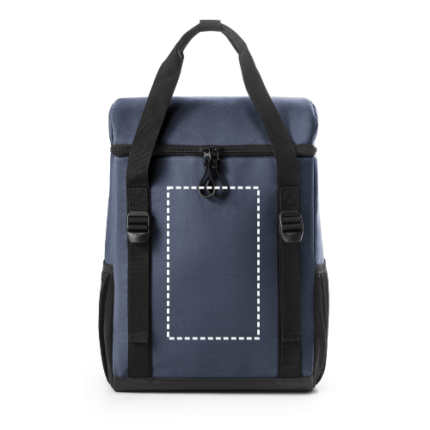 Thermal backpack padded in 600D PET (100% rPET) and ripstop. It is made up of 2 front straps that make it easy to carry items, 1 spacious main compartment with double zip fastening on both sides, 2 side mesh pockets for small items and adjustable straps to ensure greater carrying comfort. The PEVA-lined interior ensures good thermal insulation, allowing the cold to be kept in for longer and sanitised. The robust materials give it strength and durability, designed for everyday needs. Capacity up to 16 litres. 280 x 400 x160 mm