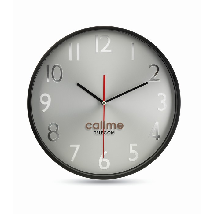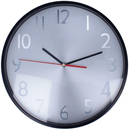 Large wall clock with aluminium dial and hands, protected by a glass lens. 1 AA battery not included.