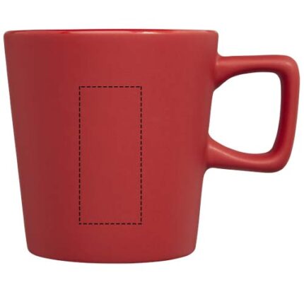 Modern design ceramic mug with matt finish. Volume capacity is 280 ml. Dishwasher safe for all decoration methods. Presented in a recycled cardboard gift box.
