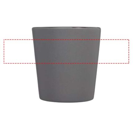 Modern design ceramic mug with matt finish. Volume capacity is 280 ml. Dishwasher safe for all decoration methods. Presented in a recycled cardboard gift box.