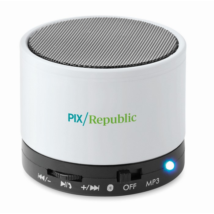 4.2 wireless speaker in ABS with rubber finish and LED light indication. 1 Rechargeable Lithium 450 mAh battery included. Includes an SD card port and an AUX / USB cable. Hands free call function. Output data: 3W, 3 Ohm and 5V. Playing time approx. 3h.