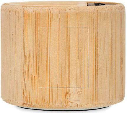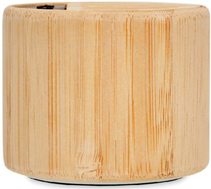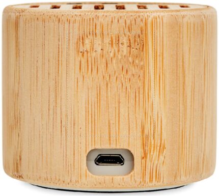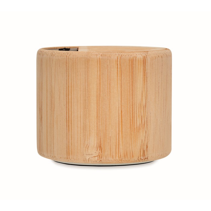 5.3 wireless speaker in ABS with bamboo casing and LED light indication. 1 Rechargeable Lithium 300 mAh battery included. Output data: 3W, 4 Ohm and 5V. Playing time approx.. 4h.