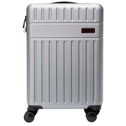 Constructed with impact-resistant recycled plastic and RPET lining, the 20” Rover cabin trolley stands for sustainability as much as quality. It features a double-tube aluminium frame, 360 degree 4-wheel spinner, an integrated TSA combination lock, an easy grab handle for comfort, and interior divider organiser compartments. Can be brought as hand luggage on most mainstream airlines. This trolley is GRS certified, including the printing, making it a more sustainable choice.