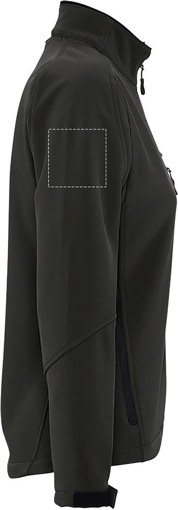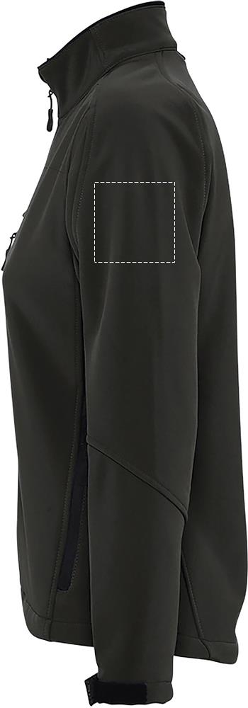 SOL’S ROXY Figure sewn Women’s softshell jacket in technical fabric with one of the highest levels of waterproofing and breathability on the market. Pre-curved sleeves and modern cut for maximum comfort. 2 zipped side pockets, 1 zipped chest pocket, zippered pocket, adjustable drawstring at the waist, adjustable cuffs with Velcro, Microfleece lining, pocket for mobile phone. 340g/m². Only sold with print