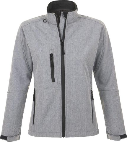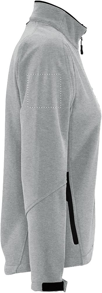 SOL’S ROXY Figure sewn Women’s softshell jacket in technical fabric with one of the highest levels of waterproofing and breathability on the market. Pre-curved sleeves and modern cut for maximum comfort. 2 zipped side pockets, 1 zipped chest pocket, zippered pocket, adjustable drawstring at the waist, adjustable cuffs with Velcro, Microfleece lining, pocket for mobile phone. 340g/m². Only sold with print