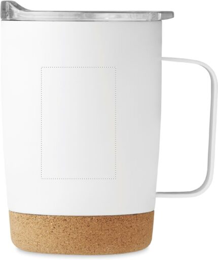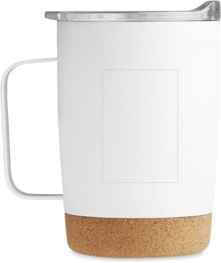 Double wall stainless steel tumbler with cork base and sliding sip hole cover. Capacity: 300 ml.