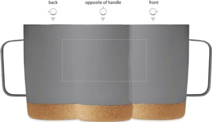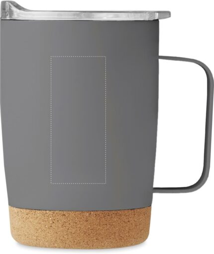 Double wall stainless steel tumbler with cork base and sliding sip hole cover. Capacity: 300 ml.