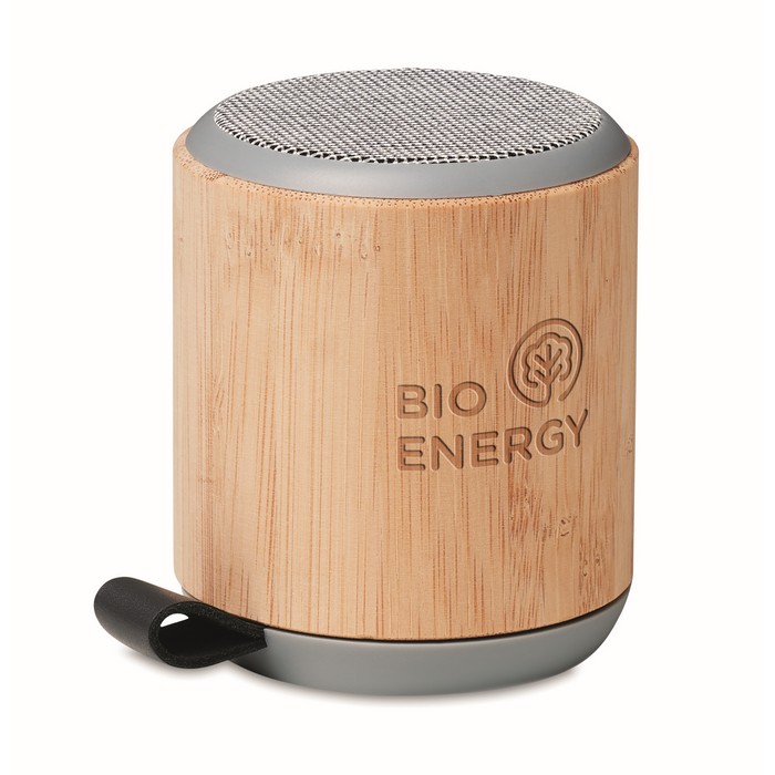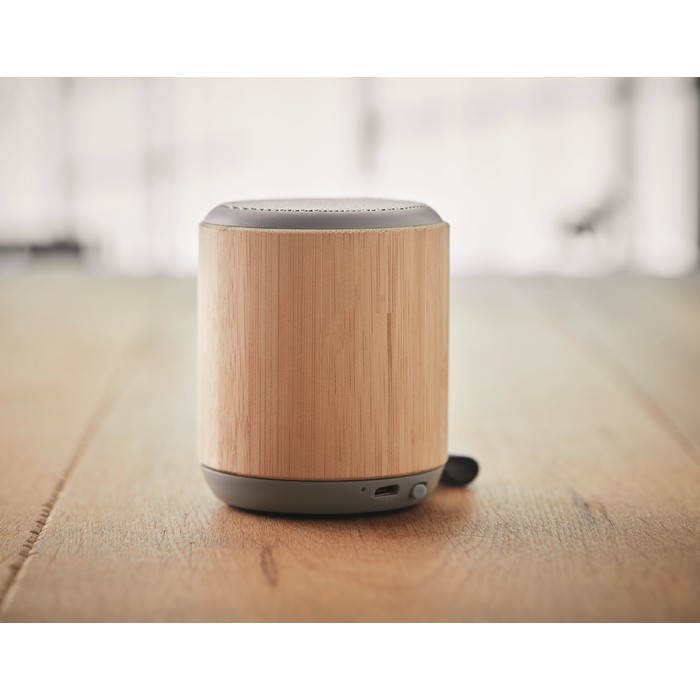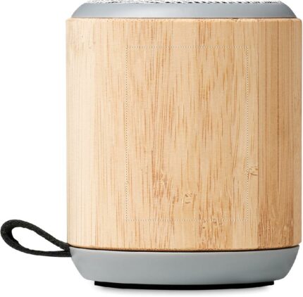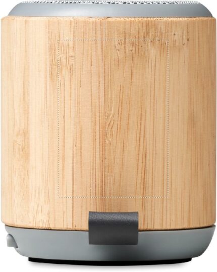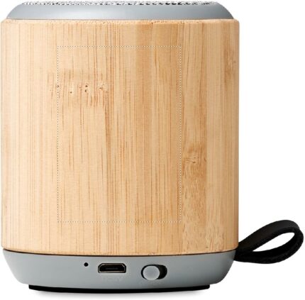 5.0 wireless speaker in bamboo cover and ABS on top with PU strap. 1 Rechargeable Li-Ion 300 mAh battery. Output data: 3W, 4 Ohm. Playing time approx. 2h.