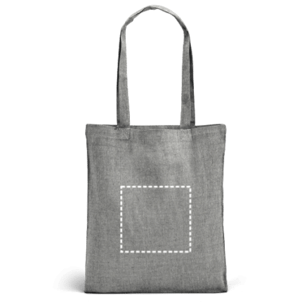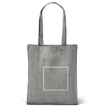 Recycled cotton bag (140 g/m²) with 65 cm handles. 375 x 415 mm