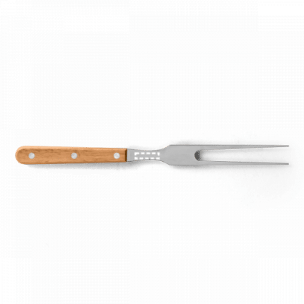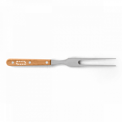 Two-piece barbecue set. Includes stainless steel steak fork and knife with bamboo handles. Supplied in a kraft paper box. Box: 340 x 115 x 25 mm