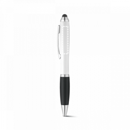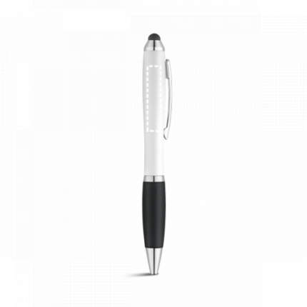Ball pen with metal clip and twist mechanism. Suitable for use on devices due to its touch tip and comfortable non-slip grip, available in several colours. Black ink. ø11 x 135 mm