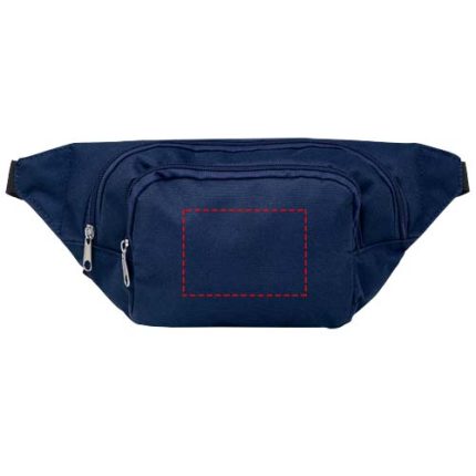 Santander fanny pack with two compartments. Two large zippered compartments Adjustable waist strap with quick release buckle. 600D Polyester.