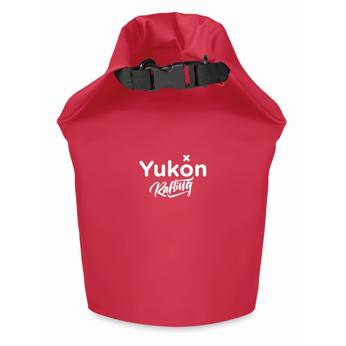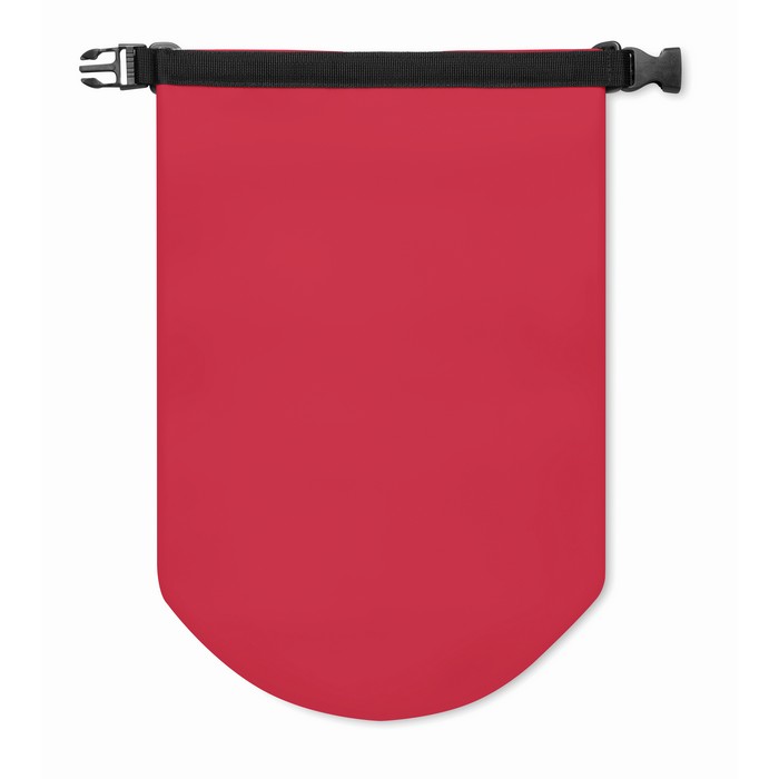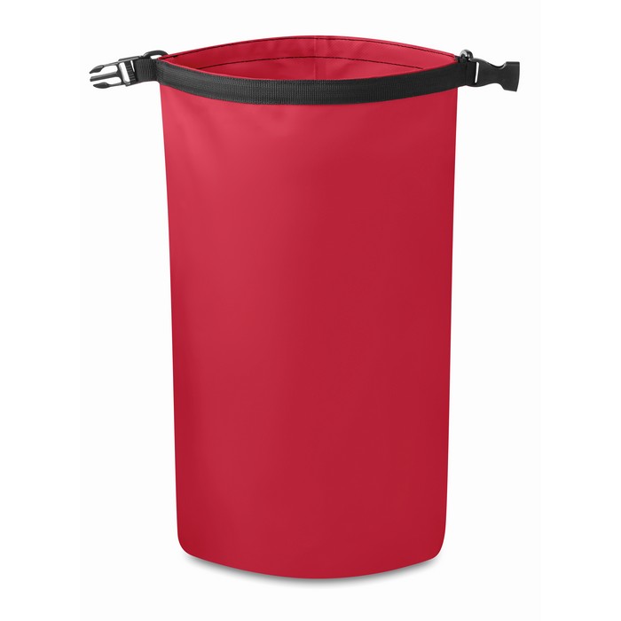 Waterproof bag in PVC. Capacity 10L, with adjustable shoulder strap.