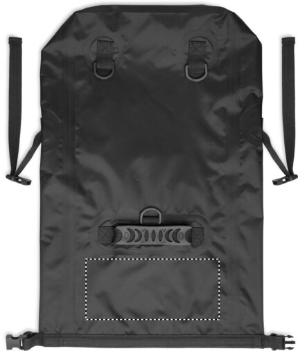 RPET 210D polyester waterproof rolltop backpack. Capacity: 30L.