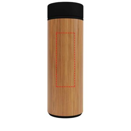 Double-walled vacuum insulated stainless steel and bamboo bottle with a temperature sensor on top of the lid, which displays the temperature of the drink inside the bottle (degrees Celsius). Keeps drinks hot for 8 hours or cold for 12 hours. Comes with a tea filter. Capacity: 500 ml. Delivered in a gift box.