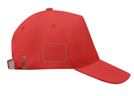 RPET 5 panel baseball cap in polyester 210 gm/m2 with silver steel buckle. 4 embroidered eyelets in matching colour. Size 7 1/4.