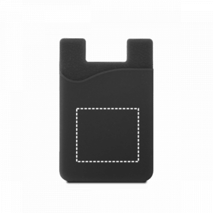 Silicone smartphone card holder with a sticker on the back. 57 x 87 x 3 mm