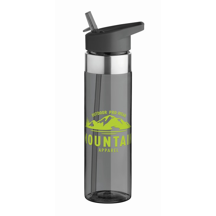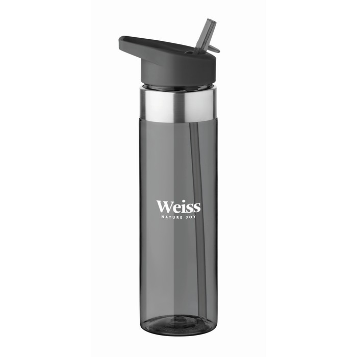 Drinking bottle in Tritan™ which is BPA free with stainless steel details and with foldable mouth piece. Capacity: 650 ml. Not suitable for carbonated drinks. Leak free.