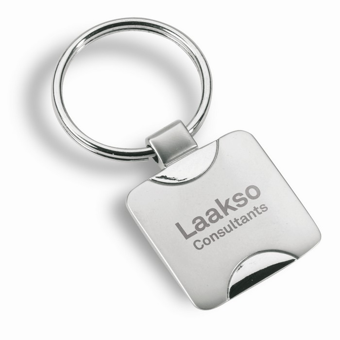 Classic square keyring in zinc alloy. Individually packed in gift box.