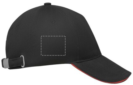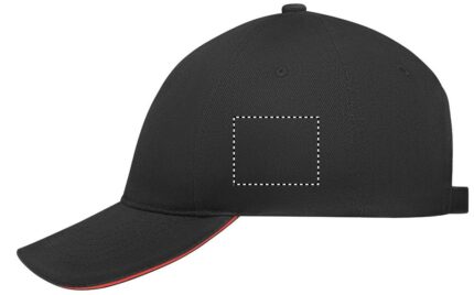 5 panel baseball cap in heavy brushed twill cotton 260 gm/m2 with silver steel buckle. 4 embroidered eyelets in matching colour. Size 7 1/4.