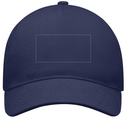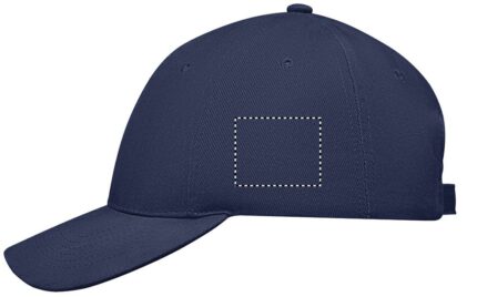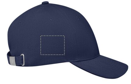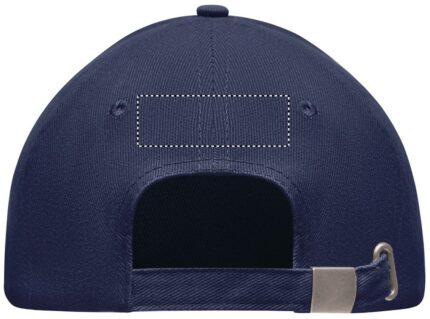 5 panel baseball cap in heavy brushed twill cotton 260 gm/m2 with silver steel buckle. 4 embroidered eyelets in matching colour. Size 7 1/4.