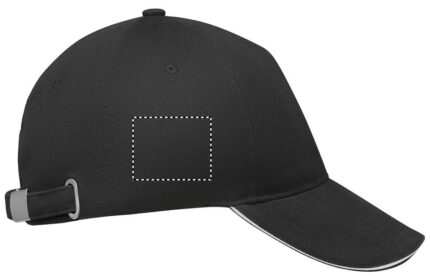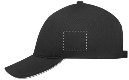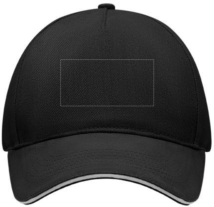 5 panel baseball cap in heavy brushed twill cotton 260 gm/m2 with silver steel buckle. 4 embroidered eyelets in matching colour. Size 7 1/4.