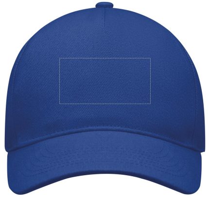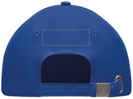 5 panel baseball cap in heavy brushed twill cotton 260 gm/m2 with silver steel buckle. 4 embroidered eyelets in matching colour. Size 7 1/4.