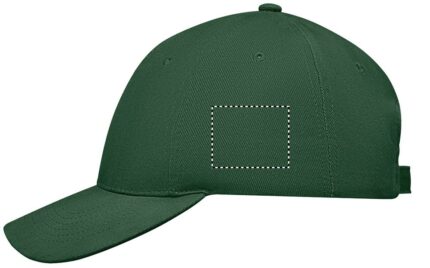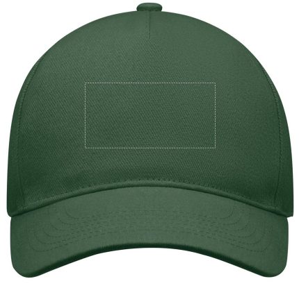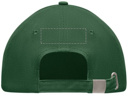 5 panel baseball cap in heavy brushed twill cotton 260 gm/m2 with silver steel buckle. 4 embroidered eyelets in matching colour. Size 7 1/4.