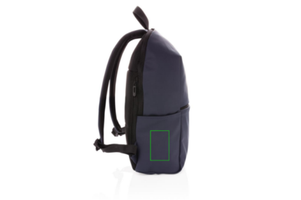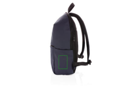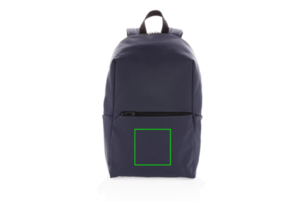 This minimalist, modern backpack made of smooth PU is fully lined and features an inner 15.6 inch laptop compartment, a spacious main compartment and 2 inner pockets and 2 pen loops. Mesh padded back and adjustable straps. Exterior 100% PU. Interior 100% 210D polyester. PVC free.