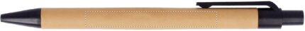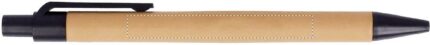A6 notepad with bamboo hard cover. Twin-wire. 140 plain recycled paper pages (70 sheets). Matching push button ball pen with recycled paper barrel and PLA detailing. Blue ink. Elastic closure strap and pen holder.