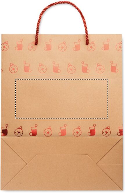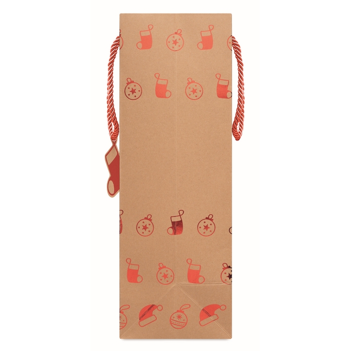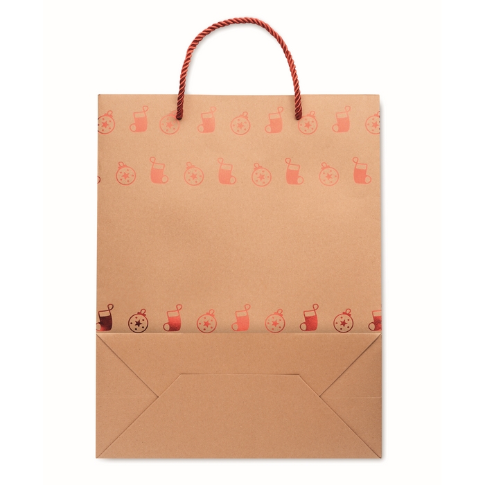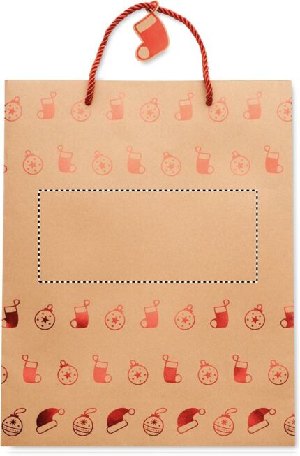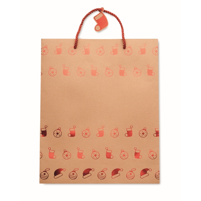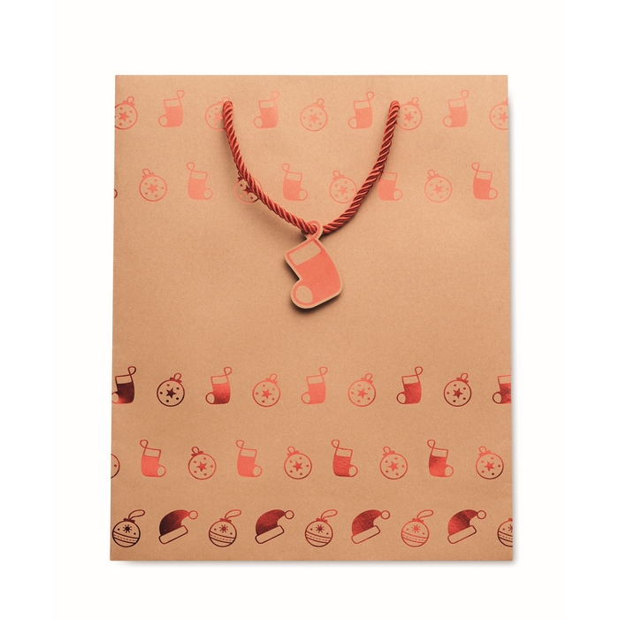 Elegant gift kraft paper bag with seasonal pattern. Gift tag included. 250 gr/m².
