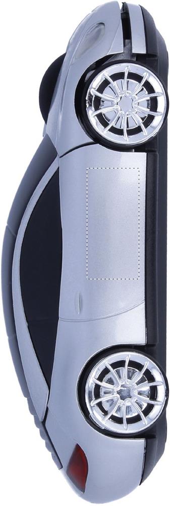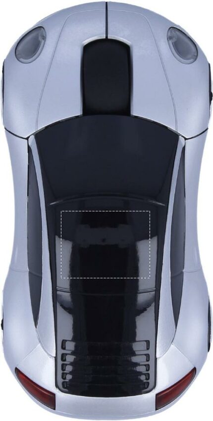 New generation wireless mouse in car shape with receiver located in the car trunk. ABS casing and black and silver shiny finish. 2 AAA batteries not included. 800 dpi.