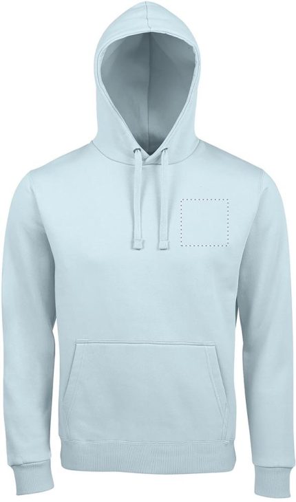 SOL’S SPENCER sweater 280g. Front pouch pocket. Cut and sewn. Lined hood with drawcord. 2×2 ribbed cuffs and hem. Half moon inside collar. Taped neck. Fabric details: 80% ringspun cotton – 20% polyester. Brushed lining. Outside: 100% cotton. OEKO-TEX®. Only Sold with Print.