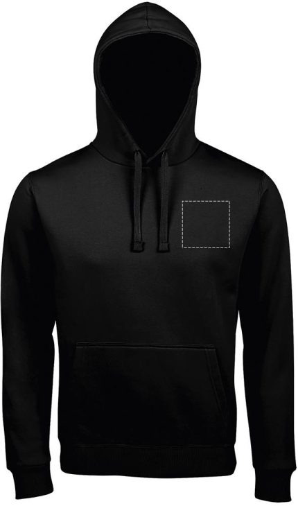 SOL’S SPENCER sweater 280g. Front pouch pocket. Cut and sewn. Lined hood with drawcord. 2×2 ribbed cuffs and hem. Half moon inside collar. Taped neck. Fabric details: 80% ringspun cotton – 20% polyester. Brushed lining. Outside: 100% cotton. OEKO-TEX®. Only Sold with Print.
