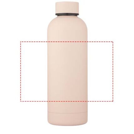 Copper vacuum insulated stainless steel bottle with clean design. The insulated 18/8 stainless steel construction prevents condensation on the inside of the bottle, and the on-trend matte powder-spray finish makes it extra durable. BPA-free, tested and approved under German Food Safe Legislation (LFGB). Tested and approved for phthalates content according to REACH regulations. Volume capacity is 500 ml. Hand wash recommended. Presented in a recycled cardboard gift box.