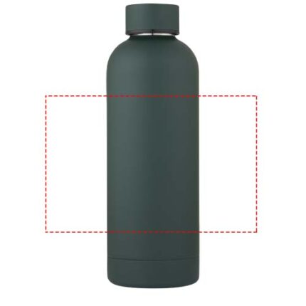 Copper vacuum insulated stainless steel bottle with clean design. The insulated 18/8 stainless steel construction prevents condensation on the inside of the bottle, and the on-trend matte powder-spray finish makes it extra durable. BPA-free, tested and approved under German Food Safe Legislation (LFGB). Tested and approved for phthalates content according to REACH regulations. Volume capacity is 500 ml. Hand wash recommended. Presented in a recycled cardboard gift box.