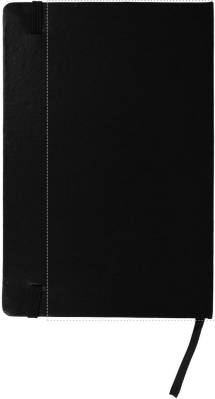 A5 notebook with hard PVC cover. Casebound. 192 squared pages (96 sheets). Matching elastic closure strap and ribbon bookmark.