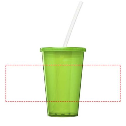 Double-wall translucent insulated tumbler. Supplied with a PE straw. Volume capacity is 350 ml. Made in the UK.