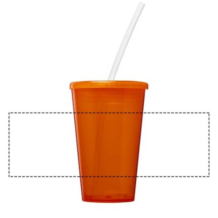 Double-wall translucent insulated tumbler. Supplied with a PE straw. Volume capacity is 350 ml. Made in the UK.