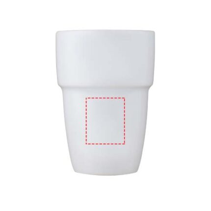 Gift set of four ceramic mugs that are stackable so that they take up as little space as possible and are neatly organized at the office or at home. Volume capacity is 280 ml. Dishwasher safe for all printing methods. Presented in a recycled cardboard gift box.
