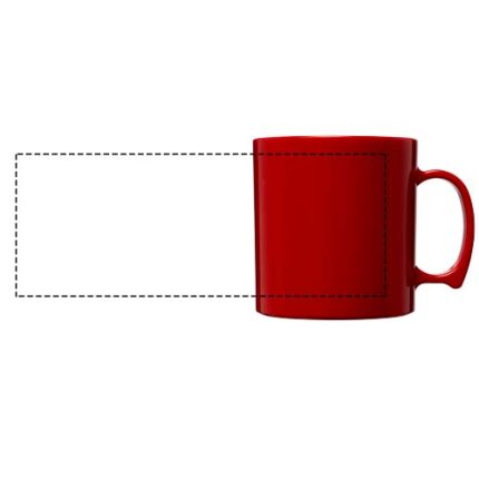 Durable, single-wall plastic mug. Volume capacity is 300 ml. Made in the UK.