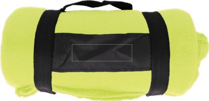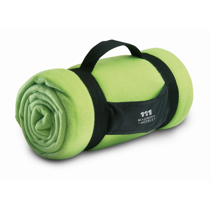 Fleece blanket with nylon handle. 180 gr/m² fleece.