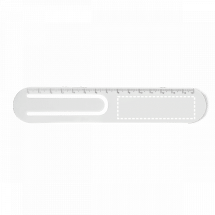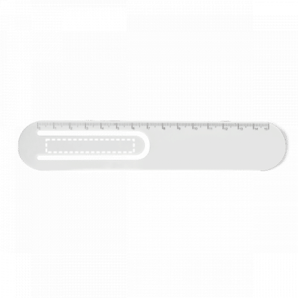 Ruler with printed 15 cm scale, rounded corners and clip. 174 x 31 x 2 mm