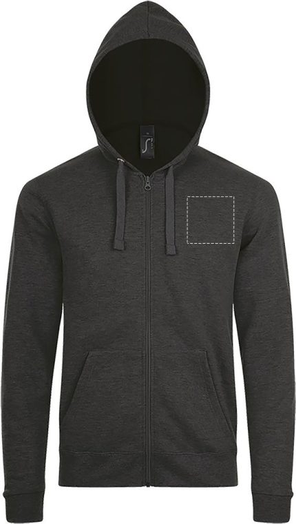 SOL’S STONE Unisex zip hoodie/ Hoodie with full zipper and with kangaroo pocket at the front. Hood with drawstring with tone-on-tone cords. Ribbed cuff at the hem and sleeves. Side seam. No neck label. Fabric details: 260g/m², brushed material in 50% cotton – 50 % polyester, OEKO-TEX®. Only sold with print