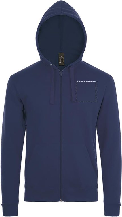 SOL’S STONE Unisex zip hoodie/ Hoodie with full zipper and with kangaroo pocket at the front. Hood with drawstring with tone-on-tone cords. Ribbed cuff at the hem and sleeves. Side seam. No neck label. Fabric details: 260g/m², brushed material in 50% cotton – 50 % polyester, OEKO-TEX®. Only sold with print