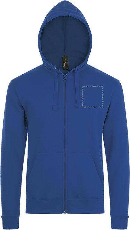SOL’S STONE Unisex zip hoodie/ Hoodie with full zipper and with kangaroo pocket at the front. Hood with drawstring with tone-on-tone cords. Ribbed cuff at the hem and sleeves. Side seam. No neck label. Fabric details: 260g/m², brushed material in 50% cotton – 50 % polyester, OEKO-TEX®. Only sold with print