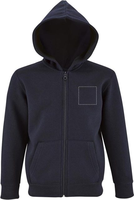 SOL’S STONE Kid’s Hoodie/hoodie with full zipper, kangaroo pocket at front, ribbed cuffs and hem. No-Label. Fabric details: 260g/m² brushed inside in 50% cotton, 50% polyester. OEKO-TEX®. Only sold with print. Sizes – 6 yrs: 106-116cm (XL), 8 yrs: 118-128cm (XXL), 10 yrs: 130-140cm (3XL), 12 yrs: 142-152cm (4XL)